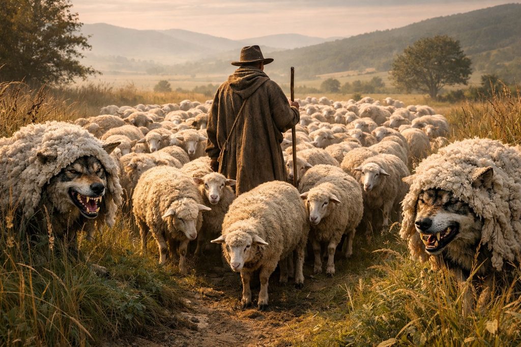 Mattheüs 7:15: “Maar wacht u van de valse profeten, dewelke in schaapsklederen tot u komen, maar van binnen zijn zij grijpende wolven.”
